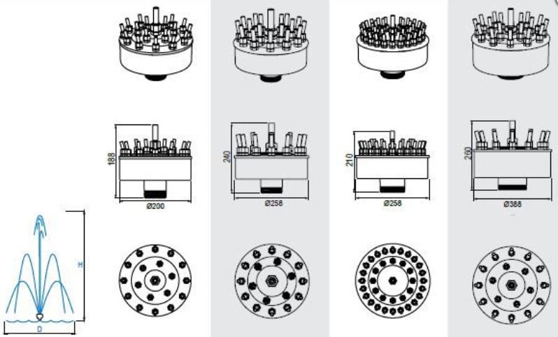 Многоструйные фонтанные насадки