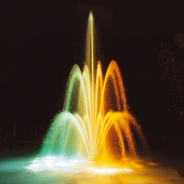 Создает эффект восхитительного трехъярусного цветка. Рекомендован для тихих мест, таких как внутренние дворы, сады или интерьеры. Фонтанные насадки «Флер-де-Лиз» могут применяться в комбинации с насадками других конфигураций. По запросу возможно исполнение насадки с покрытием из хрома. Хороший вид водной картины достигается правильным подбором насоса. Существует возможность регулировки угла наклона струй.