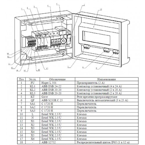 вкл/откл насоса. Распределительный щиток IP65 (1х8 м). Предназначен для управления работой монофазного насоса максимальной мощностью 2 кВт.