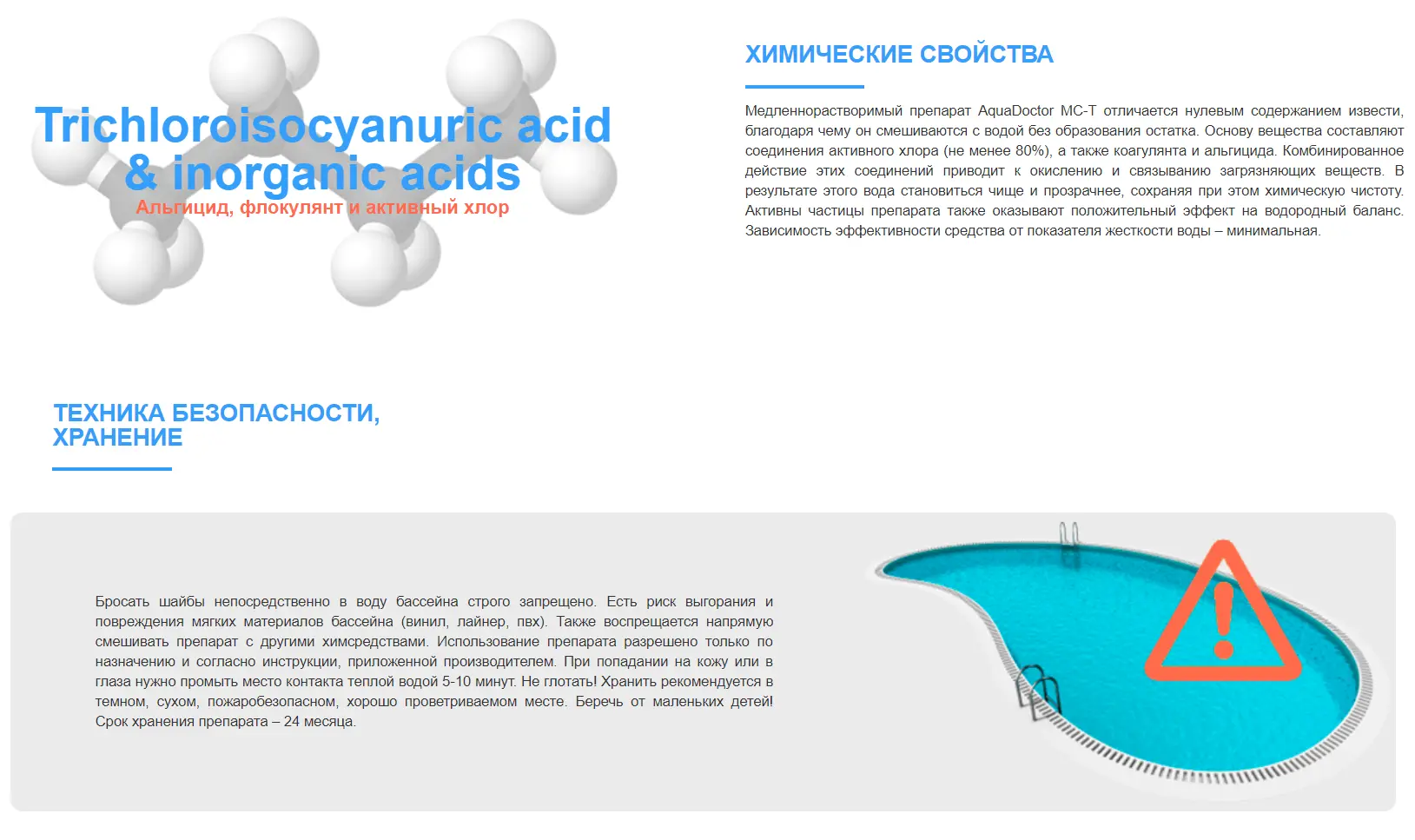 • Не используется для первичной (шоковой) обработки воды