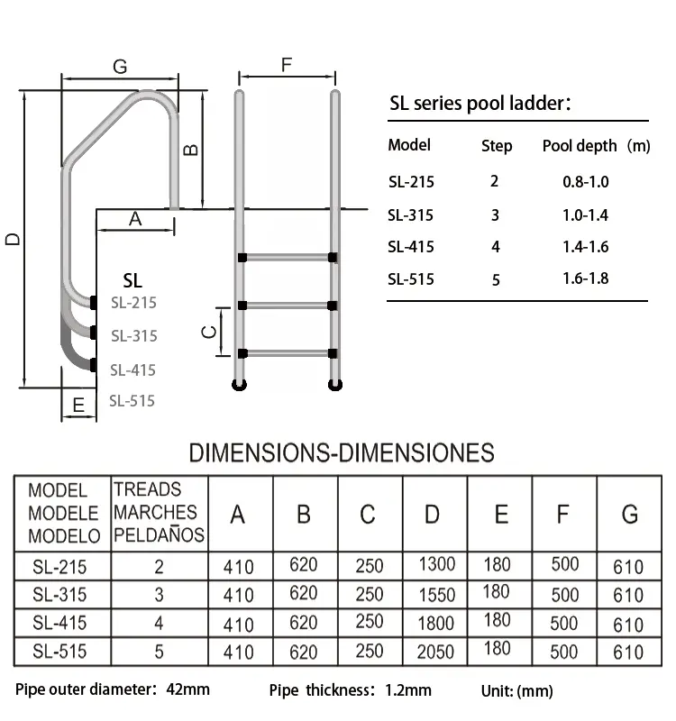 Лестница серии SL (Standart) китайской компании Mayer Schwimmbad предназначена для частных и коммерческих бассейнов с широким бортом, а также для бассейнов с переливным лотком.