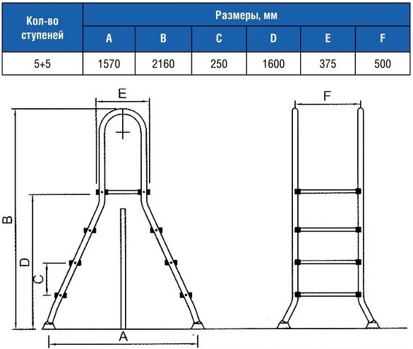 Приставная лестница Junli Pipe 5+5 на пять ступеней для сборного наземного бассейна. Лестница отличается особенно устойчивой формой, наличием площадки, а также превосходным качеством сборки.