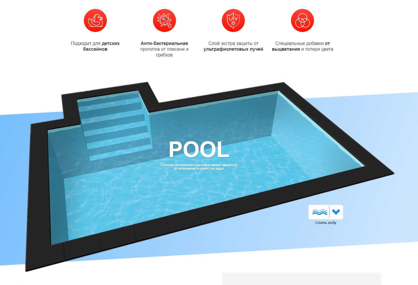 Благодаря армированию, материалами и толщине мембраны лайнер может принимать любую форму чаши бассейна и выдерживать большое механическое точечное воздействие.
