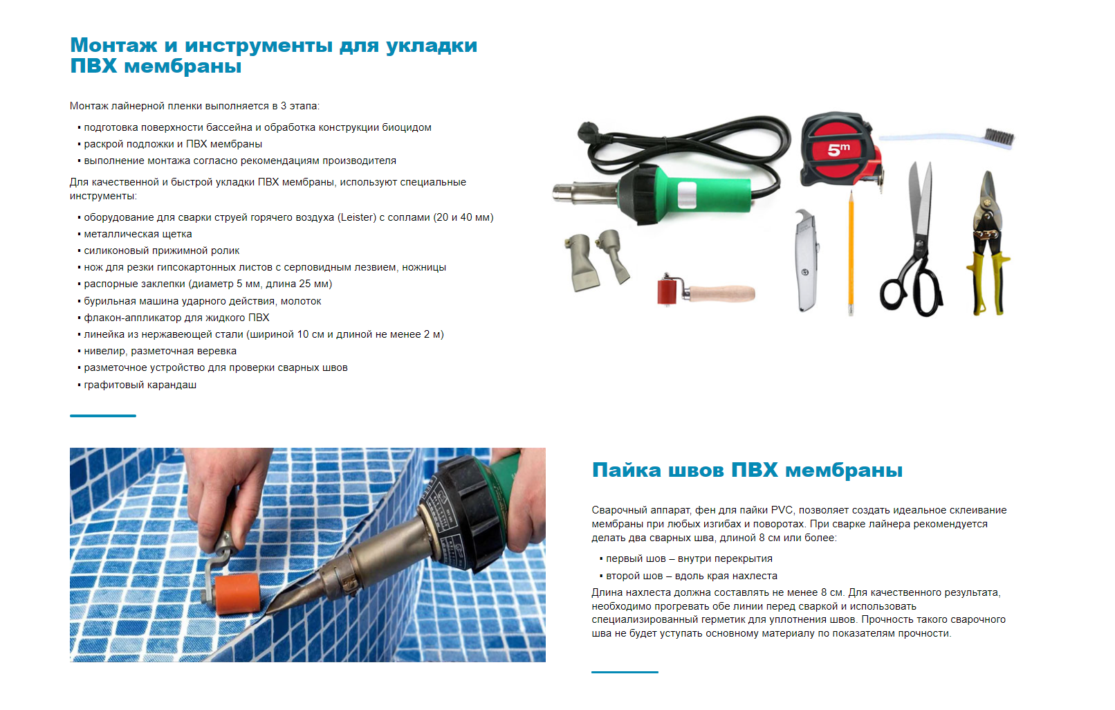 Благодаря армированию, материалами и толщине мембраны лайнер может принимать любую форму чаши бассейна и выдерживать большое механическое точечное воздействие.
