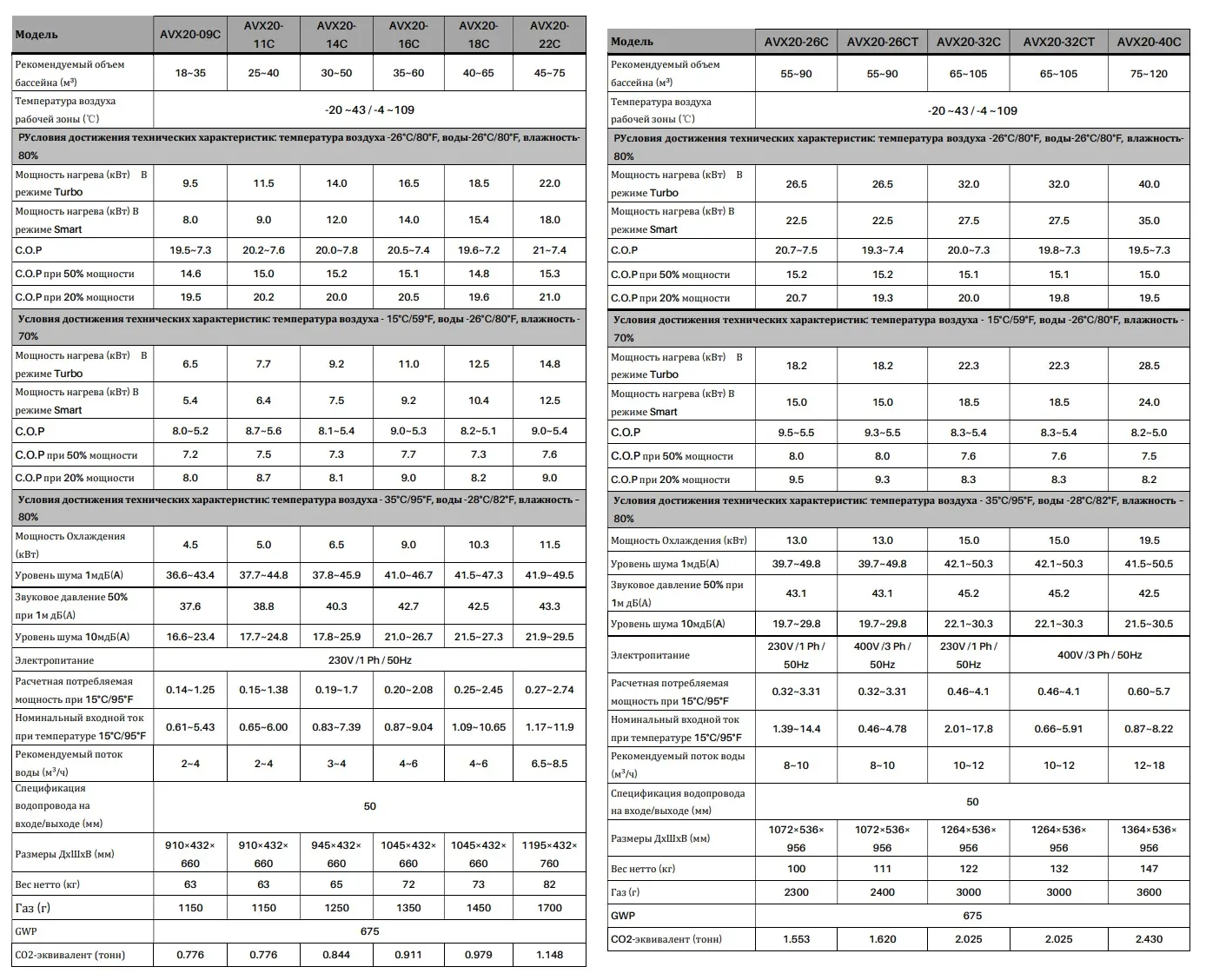 Управление всей линейкой интуитивно понятно: через сенсорный дисплей или дистанционно по Wi-Fi со смартфона можно легко настроить нагрев или охлаждение воды. Для достижения максимальной производительности и соответствия современным стандартам безопасности во всех моделях используется высокоэффективный хладагент R32, отвечающий европейским нормам. Линейка AVX20 это широкий выбор решений под любой бассейн.