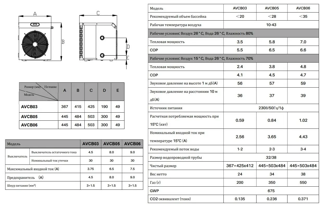 Все модели серии AVCB отличаются ультракомпактными размерами, стильным дизайном и простотой подключения. Конструкция насосов включает прочный металлический корпус и титановый теплообменник, что обеспечивает их надёжную работу с хлорированной и солёной водой.
