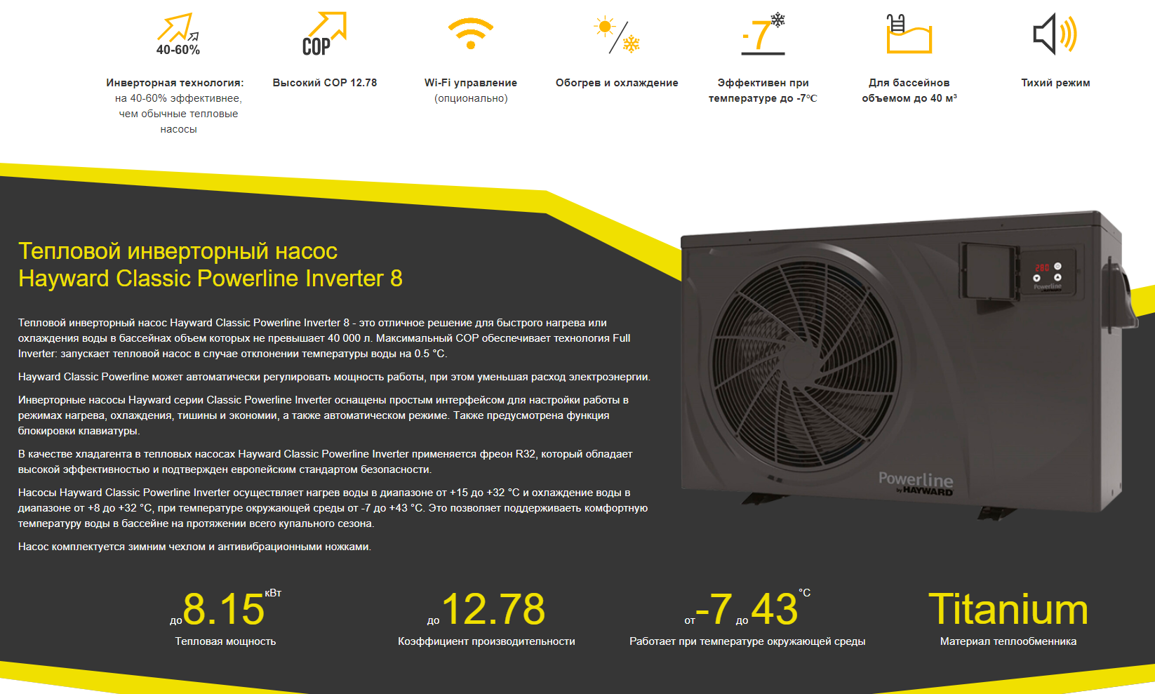 Тепловой насос Hayward Powerline Inverter 8 кВт