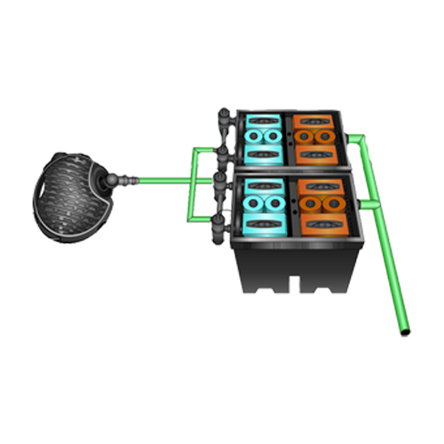 Проточные фильтры производят постоянную очистку воды,делая водоём подходящим для купания и обеспечивая пригодность для жизнедеятельности растительности и рыб. BIO-SYSTEM 2 - система состоит из 2-х блоков BIO 100I, на которые по шлангу(32мм) подает воду один насос,через УФ- бактерицидные лампы(55Вт), установленные на каждом из блоков,шланг от насоса (32мм) подключается к тройнику и от тройника расходится шлангом на два блока фильтров,(шланг 32мм). Слив очищенной воды из фильтровпроисходит из патрубков 63-75 мм,которые можно обьединить в одну трубу 100мм.ретрт