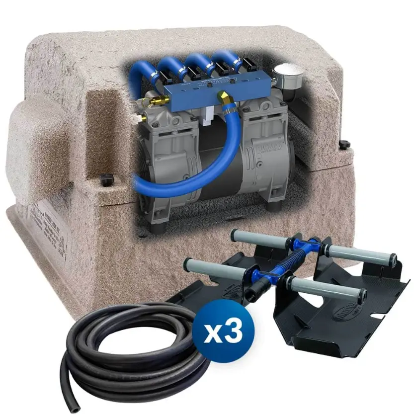 Аэратор для водоема, серии PondSeries™. Отличительной особенностью системы является корпус аэратора. Все внутренние детали защищены от попадания воды внутрь конструкции, а также от механических повреждений. Внешний вид корпуса максимально приближен к естественным природным очертаниям, что делает его максимально незаметным в существующем ландшафтном дизайне.