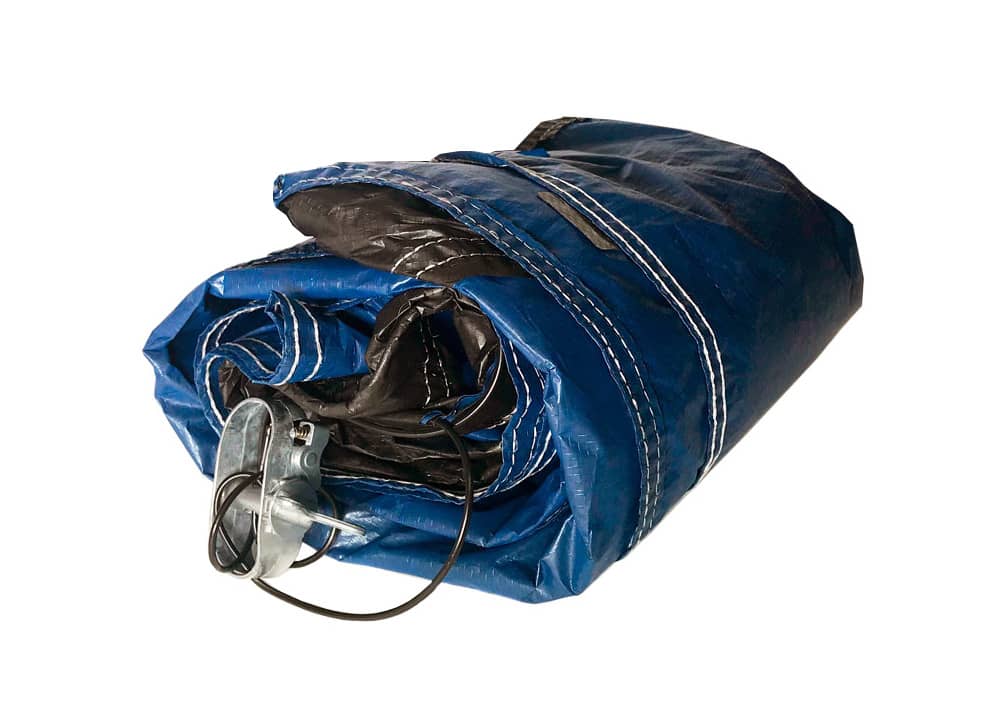 Покрывало производителя Atlantic pool является водонепроницаемой пленкой, по структуре напоминающей брезент. Изделие имеет механизм для стягивания и трос. Чтобы закрыть бассейн, нужно постелить покрывало на поверхность воды и затянуть его края на бортах бассейна. Используя специальный механизм и трос, можно плотно обжать покрывалом весь бассейн.
